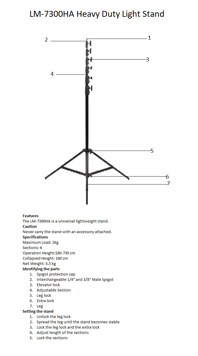 Belangrijke eigenschappen Falcon Eyes Lampstatief LM-7300HA