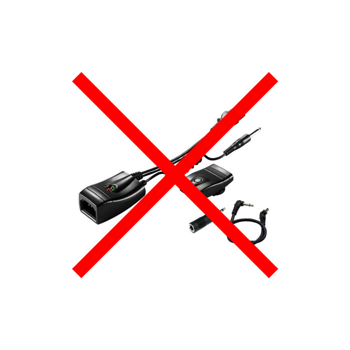 Let op! Deze triggerset werkt niet met bepaalde Sony camera's. Controleer daarom altijd of je een adapter nodig hebt. Gebruik voor nieuwe Sony hotshoe aansluitingen de TF-334 uit de optionele accessoires. Voor Sony camera's met een oude aansluiting is de HS-25Sa adapter geschikt.