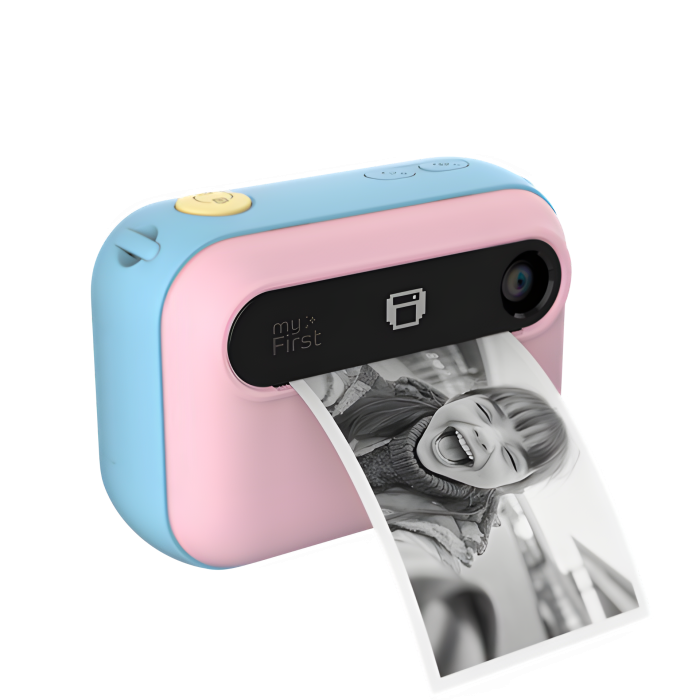 myFirst Insta 20 Roze: lichte kindercamera (16MP, 3" scherm) met thermische print voor directe afdrukken. 1080p video, PixTure OLED, 800mAh batterij. Tijdelijk: gratis 750150 thermal paper.