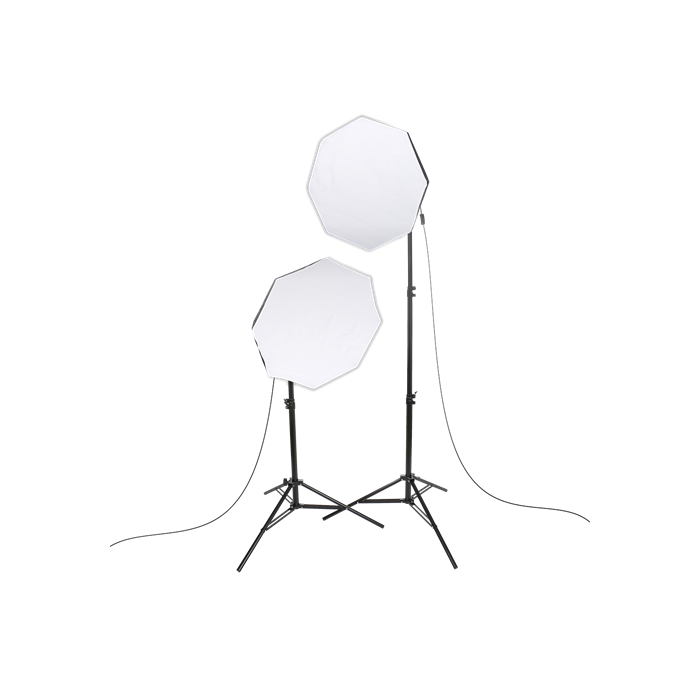 De leveringsset bevat 2 octaboxen, 2 krachtige 85W spiraallampen, 2 stevige statieven, 2 diffuusdoeken en een praktische draagtas voor maximaal gemak.