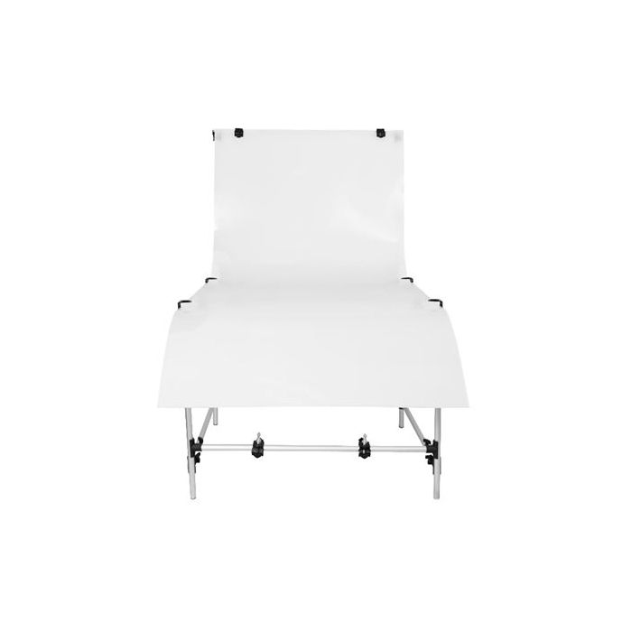 Met de ST-60 opnametafel ontvang je de volgende accessoires: de constructie voor de opnametafel zelf, 1 PVC-blad voor een stevige ondergrond, 8 montageklemmen voor het blad, en 2 spigot-klemmen voor de verlichting. Maak je klaar om professionele, schaduwloze productfoto's te maken die indruk maken.