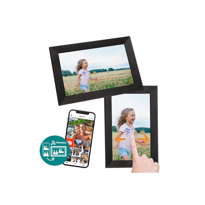 Ervaar de ultieme nostalgie met de Frameo HF-101B, een moderne digitale fotolijst die je mooiste herinneringen tot leven brengt op een indrukwekkend 10.1 inch IPS-scherm. Met een premium uitstraling in stijlvolle zwarttint, integreer je de Frameo moeiteloos in elke woonruimte. Deze high-tech accessoire maakt gebruik van een handige smartphone-app zodat jij en je familie draadloos foto's kunnen uploaden. Het intuïtieve aanraakgevoelige scherm werkt op een voorspellend Android-besturingssysteem, waardoor navigatie een fluitje van een cent is. Met een haarscherpe HD-resolutie van 1280 bij 800 pixels geniet je van kraakheldere en levendige weergaven van al jouw favoriete beelden. Het scherm dat zelf 21,5x13,3 cm meet, inclusief rand 26,3x18,3 cm, maakt de Frameo 2,3 cm dik. Met de royale kijkhoek geniet je simpelweg vanuit elke hoek van de kamer. Op het ruime interne geheugen vind je plek voor meer dan duizend foto's. Importeer of back-up foto's gemakkelijk via een micro SD-kaart of USB-stick. Of je nu kiest voor een horizontale of verticale plaatsing, de Frameo blijft altijd stevig staan dankzij het handige pootje.