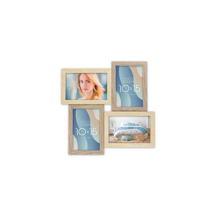 Laat je interieur stralen met de Zep Fotolijst DT987 Oberg 4Q. Deze unieke fotocollage is perfect voor 4 foto's van 10x15 cm, waarmee je jouw mooiste herinneringen een opvallende plek geeft in huis of op kantoor. Het slimme ontwerp combineert horizontale en verticale overlappende lijsten op verschillende niveaus, met een prachtige mix van bruine en natuurlijke houtkleuren. Met een totale afmeting van 32 x 32 cm is deze fotolijst een stijlvolle toevoeging aan elke muur.