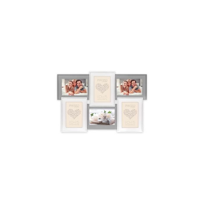 De Zep Fotolijst HH156 Rouen 6Q 6x 10x15 cm tilt je favoriete foto's naar een hoger niveau. Ontworpen voor zes foto's van elk 10x15 cm, brengt deze lijst stijl en structuur in jouw ruimte. Met een elegant wit en grijs houten ontwerp voor meerdere foto's, biedt de Rouen 6Q een dynamische wandpresentatie door overlappende lijsten op verschillende niveaus te combineren. Perfect voor zowel thuis als op kantoor, deze fotolijst transformeert muren met zijn indrukwekkende afmetingen van 49 x 33 cm (lxb).