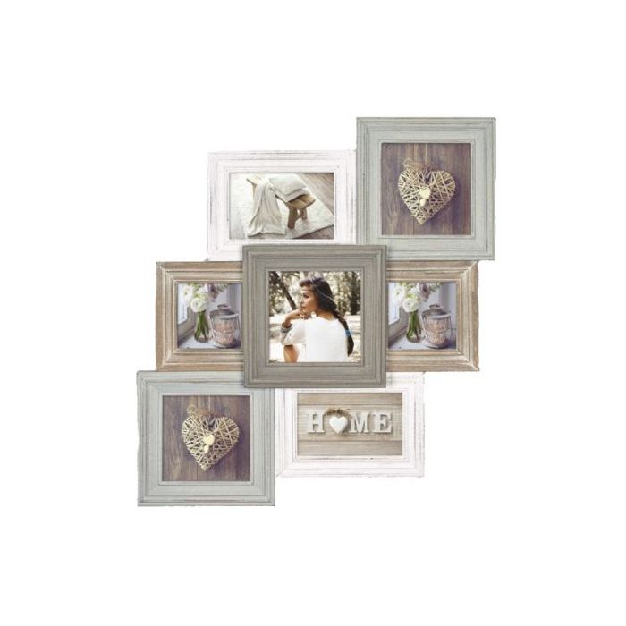 De TY381 Airolo van Zep Italia geeft elke ruimte een persoonlijke touch met ruimte voor 7 prachtige foto's. In dit stijlvolle frame plaats je 3 foto's van 13x13 cm, 2 foto's van 10x15 cm én 2 foto's van 10x10 cm. Het ontwerp straalt een vintage allure uit, terwijl het totale formaat van 48x53 cm, inclusief het frame, ervoor zorgt dat jouw herinneringen in volle glorie schitteren. Dankzij de mogelijkheid tot verticale plaatsing én muurbevestiging, bepaal jij perfect de presentatiestijl.