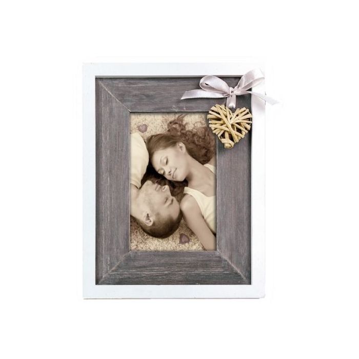 - Uniek design: Grijs wit frame met een decoratief houten hartje voor een persoonlijke touch.