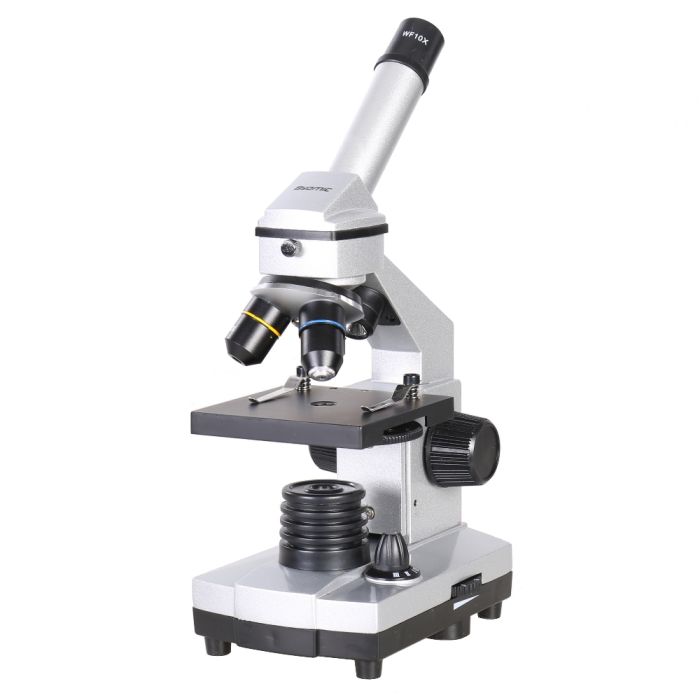 Deze veelzijdige microscoop biedt oplicht- en doorlichtverlichting die gevoed wordt door een gebruiksvriendelijke voedingsadapter. Schakel eenvoudig tussen de verlichtingstanden of gebruik ze tegelijkertijd. De intensiteit van het licht regel je moeiteloos met een ingebouwd draaiwiel in de voet van de microscoop, zodat je altijd het perfecte licht hebt voor jouw observaties.