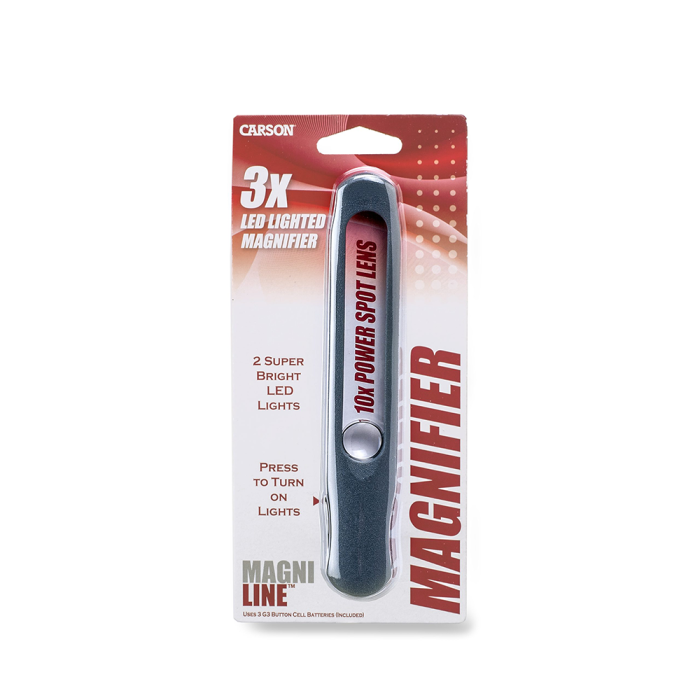 Deze leesliniaal is een onmisbaar hulpmiddel voor iedereen die regelmatig boeken, kranten of tijdschriften leest, zowel thuis als onderweg. Ook bij minder licht biedt de Carson MagniLine de uitkomst dankzij de krachtige LED-verlichting. Voor het gebruik van de LED-verlichting plaats je eenvoudig 3 meegeleverde LR41-batterijen in het compartiment aan de achterzijde van de handgreep.