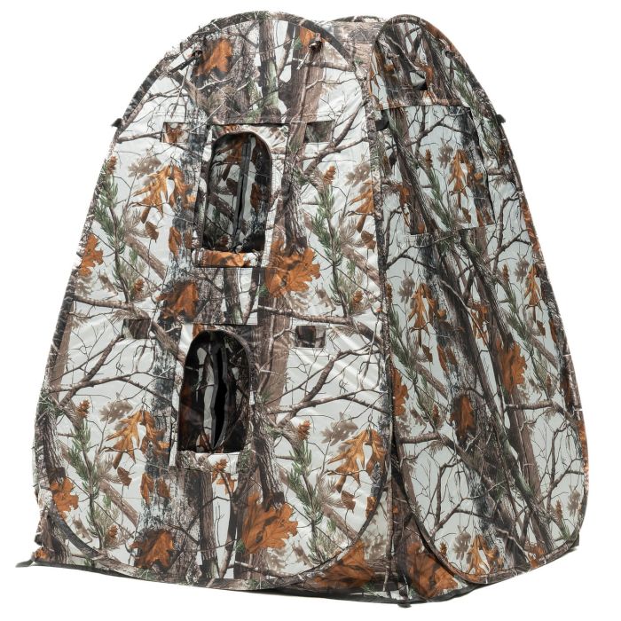 Ben je van plan de tent beter te laten opgaan in zijn omgeving? Bevestig dan extra camouflage, zoals takken en bladeren, met de ingebouwde touwtjes. Voor nog meer variatie gebruik je eventueel een extra camouflagenet. Zorg er altijd voor dat je uitzicht rondom vrij blijft voor de beste foto's. Het tentdoek vervaardigd uit polyester 150D belooft een lange levensduur, hoewel langdurige blootstelling aan zonlicht de camoprint wat kan doen vervagen. Dankzij de waterkolom van 2.500 mm blijft de inhoud droog bij regen, maar houd rekening met een eventuele afname in weersbestendigheid bij zeer langdurig gebruik.